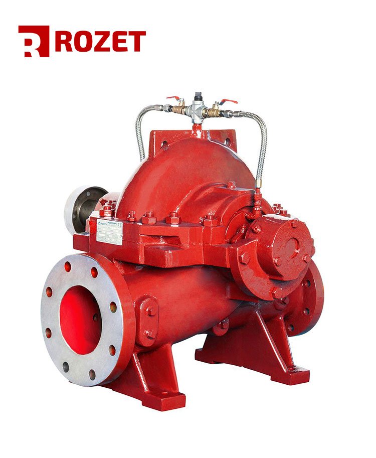 - Horizontal, single-stage, double volute, axially split case centrifugal firefighting pump, which is dedicated to large capacities, highest efficiencies and reliability.